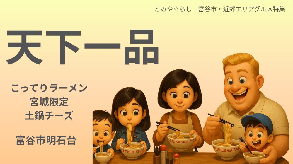 週末の昼下がり、家族で富谷の「とみやど」を散歩していると、ふと子どもたちが「ラーメン食べたい!」と声をあげました。 長女のひよりは少し大人びた顔で「丹心麺って有名らしいよ」とつぶやき、次男カイは「おなかペコペコ!」と走り出す始末。そんな様... -