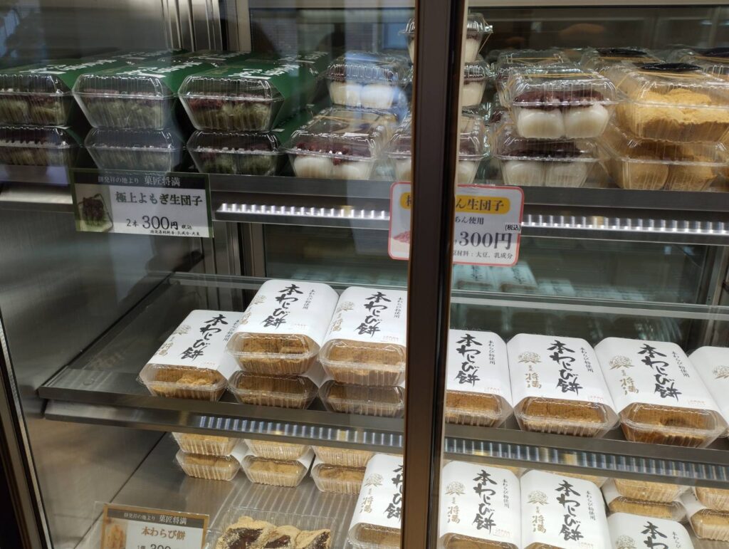 - 手土産・差し入れに個包装の大福や、箱入りのわらび餅は手土産に最適。ただし、日持ちは商品によって違うので店員さんに確認を。