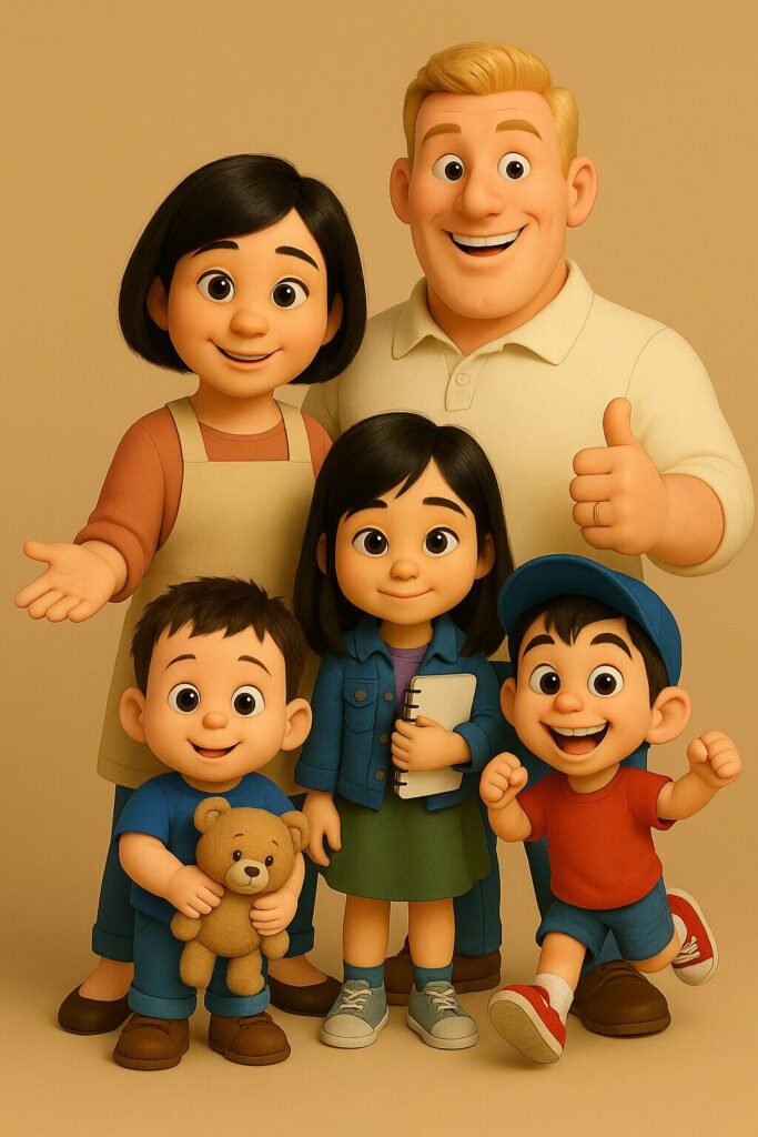記事内では、架空のキャラクター「トミー一家」が登場します。